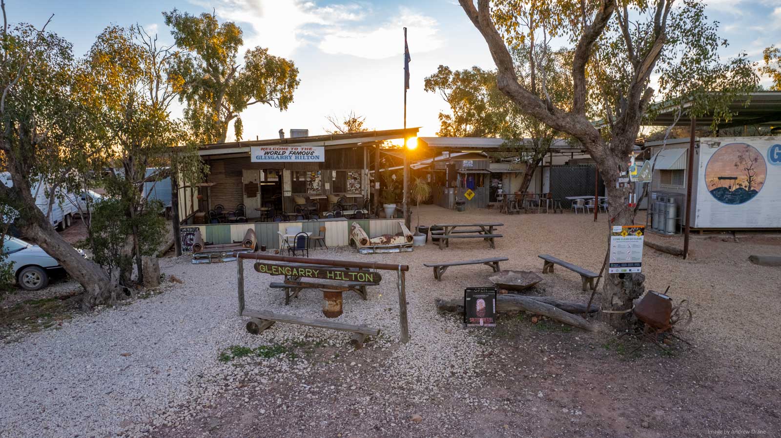 Established in the 1960s when, anecdotally, illegal grog was sold from the back of of a rabbit chiller, the Glengarry Hilton is still an assemblage of sheds, shipping containers and lean-to structures, except of course, it’s now a fully licensed legal pub!