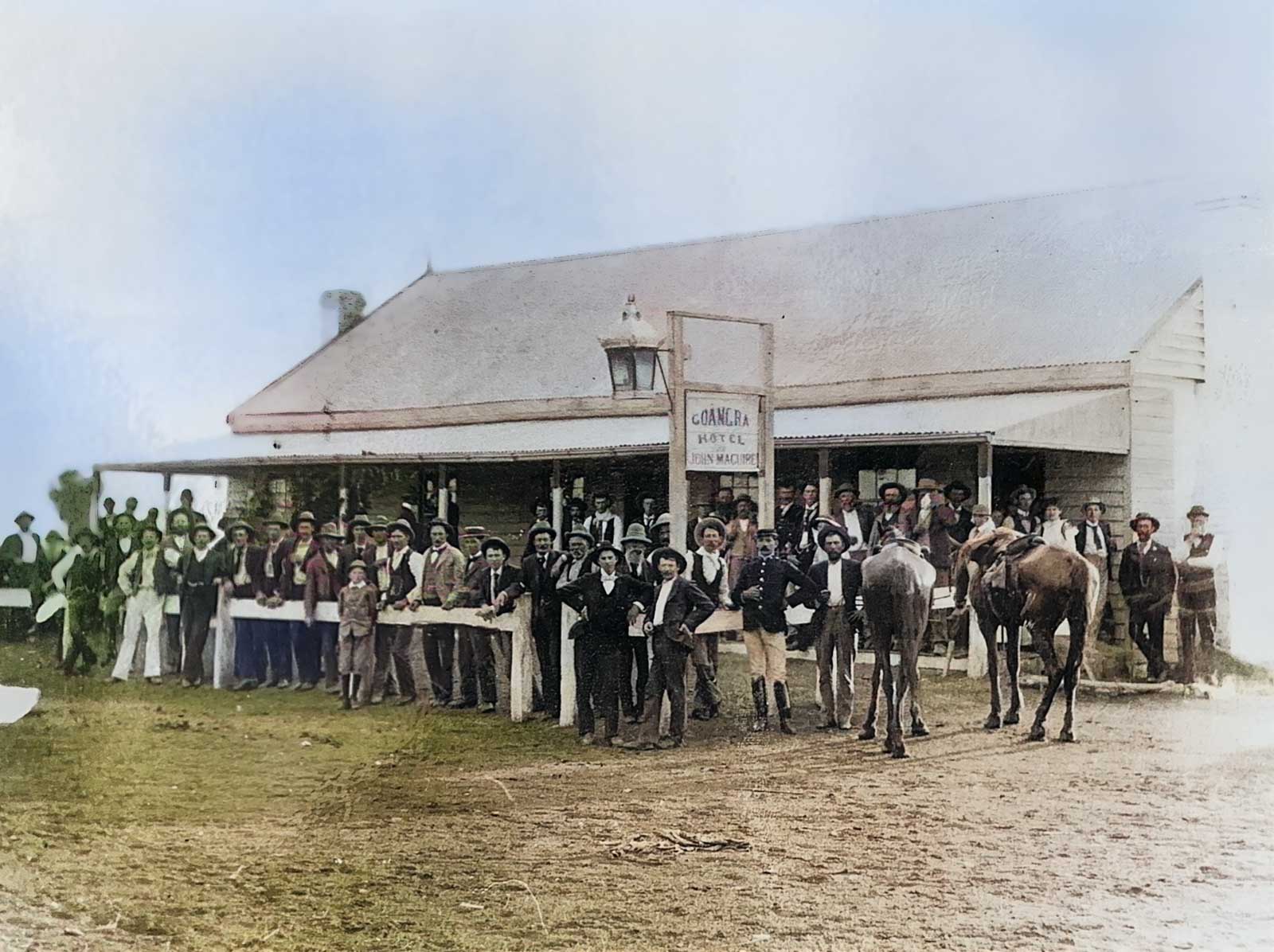 “GOANGRA HOTEL, TOWN OF GOANGRA in High Street, about 20 miles from Walgett, to which the railway may yet run, and then this property may be close to the line. The land is ONE ACRE being lots 2 and 3, fronting HIGH STREET, and extending to a lane. GOANGRA HOTEL is of wood, with good accommodation and stabling to carry on the business.”