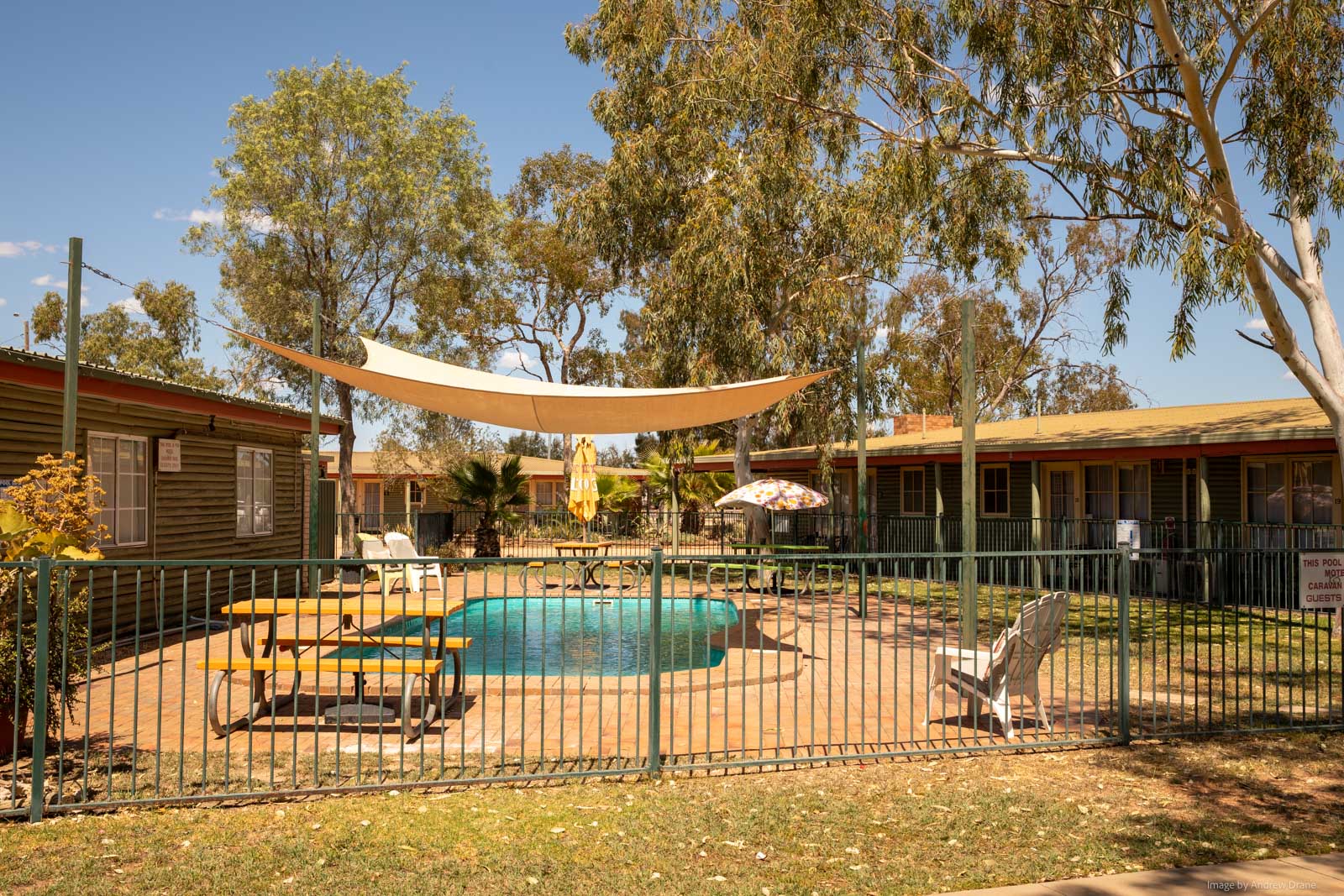 You can’t miss the entrance to the Outback Resort with its signature flying van painted by local artist John Murray. Inside you will find all accommodation options catered for, with a campground, caravan park and amenities, and cabin-style motel accommodation with spacious parking available for travellers.