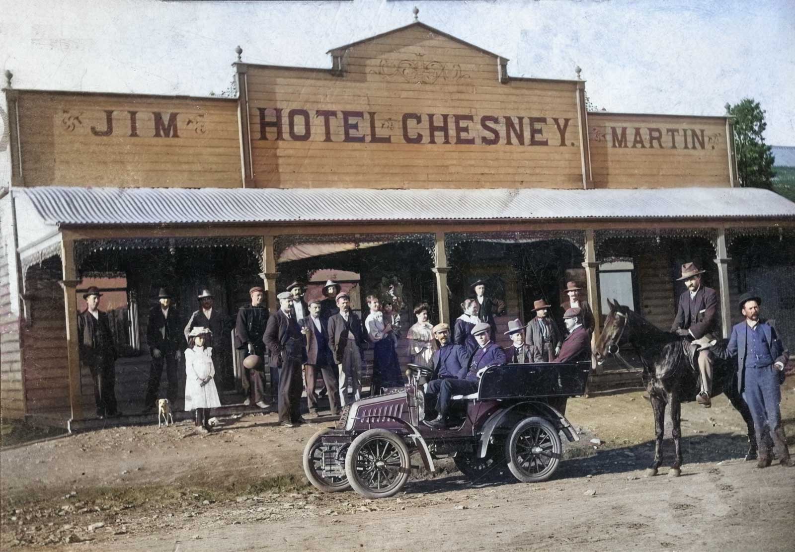Two of Wrightville’s hotels, the Chesney and the Young Australia, were named for the nearby mines where much of their clientele worked. The Young Australia was the first known hotel in Wrightville, opening in 1896. Jim Martin, proprietor of the Chesney for three years, boasted he owned the first car in Cobar, proudly posing with it outside his pub.