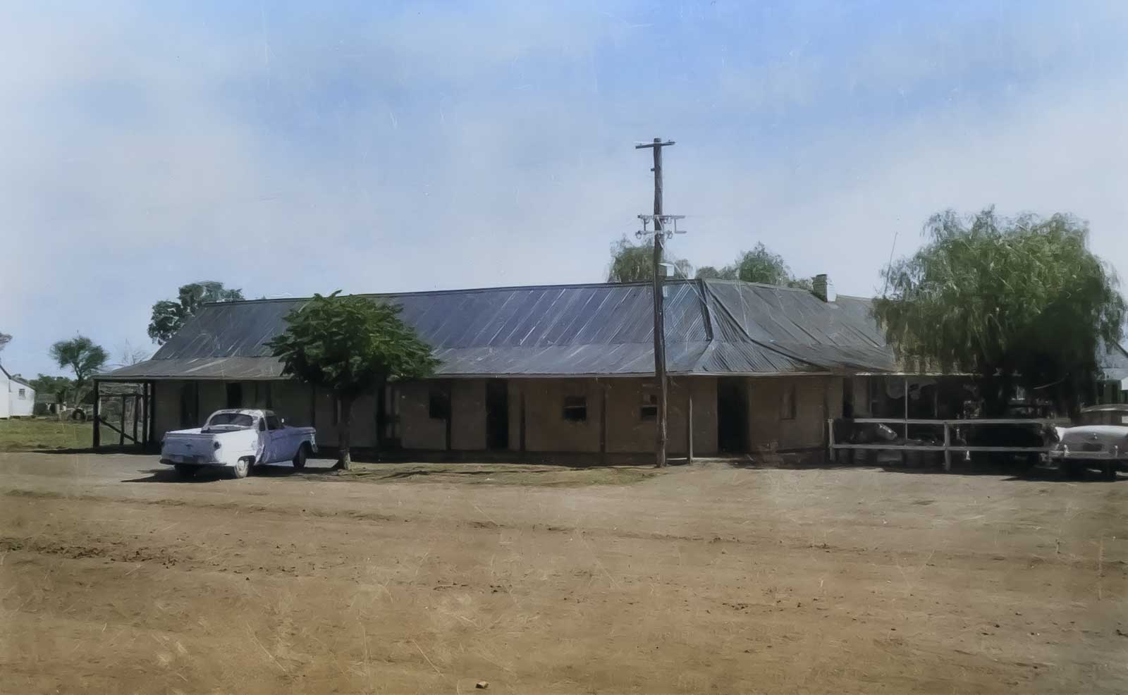 The Hungerford ‘Royal Mail Hotel’ was constructed in 1873 of corrugated iron, which was transported over 200 kms from New South Wales on bush tracks. It is the original building, which is still in use to this day. The Royal Mail was originally a Cobb & Co Staging Post where weary horses and travellers gained some respite from the road, heat and infrequent floods.