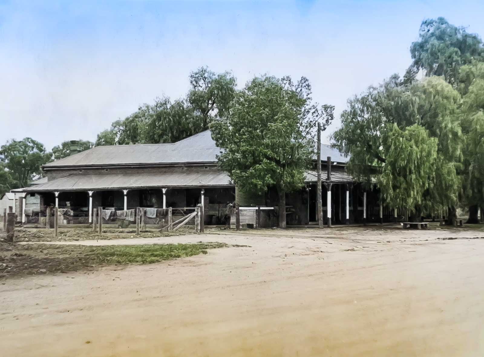 The principal business centre appears to be at the other (eastern) end of the settlement. Here Mr. H. Cabot — the pioneer business man of Euabalong — has the Royal Hotel, a commodious brick building, which is honestly one of the most comfortably appointed and best managed houses to be found in the whole district. Mr. Cabot also carries on a general store keeping business in premises opposite the hotel. The police-station and premises are neat and well kept, but the post and telegraph office struck me as rather small. The ‘village blacksmith ‘ should be doing well with the number of carriers on the road.