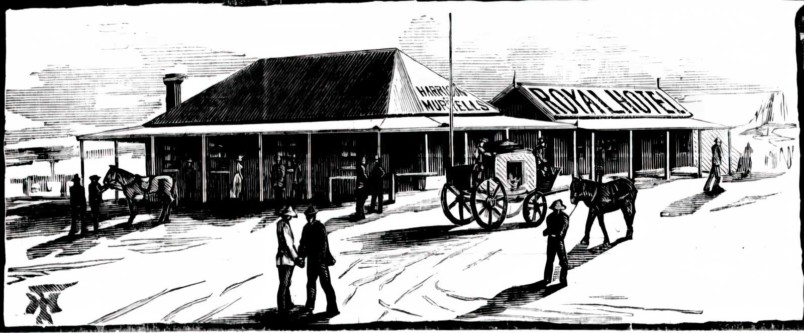 At the upmarket, 14-room Royal, the courteous host catered for gentlemen and offered fine cuisine. The Carriers Arms was neat and comfortable and The Commercial was greatly fancied by the ‘bone and sinew’ of the bush.