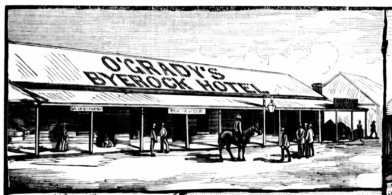 Linking Sydney to the bush heralded Byrock’s moment of glory, and for 12 months or so the hotels did a roaring trade. A visitor reported that O’Grady’s Byerock Hotel was “an airy and commodious structure, gives good bed and board, dispenses a fine brew, and seems to eschew those cheap abominations in ‘fermented and spirituous liquor’ which have been only to truly described as ‘liquid fire and distilled damnation.’”