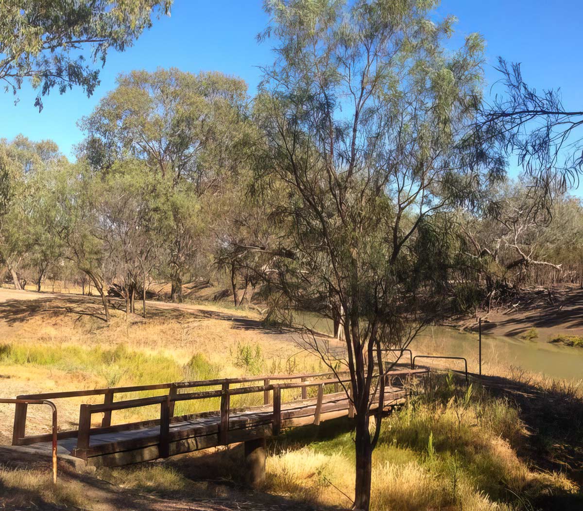 The entrance to the Tracker Walford Walkway is on Warrena Street, east from the corner of Namoi Street. It was created by the Walford family so that walkers could enjoy the beautiful Namoi River. It is a favourite wedding location and extends for 1.5 kilometres along the river to the cattle crossing. Described in his obituary as ‘one of the last Aboriginal trackers’, Norman Walford’s career ended at Walgett in 1973 where he had been based for many years. He received a commendation from the Commissioner of Police for finding a man lost on Booka Booka Station, Brewarrina, at Christmas 1957.